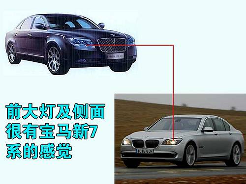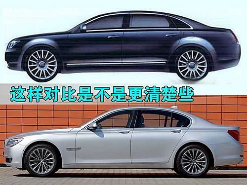 從側(cè)面看,能夠更直觀看出它與寶馬7系的相似度,同樣的車頂弧線、高腰線,甚至連多輻輪轂都相當(dāng)神似,不過寶馬所推崇的后窗內(nèi)旋弧度沒有被搬走。