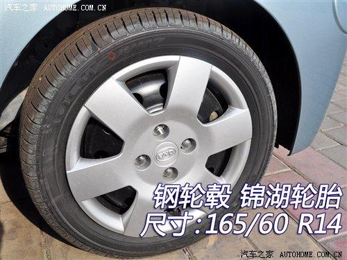 比亞迪F0的四款車型都裝備了尺寸為165/60 R14的錦湖輪胎,其中高配的尊貴型和旗艦型采用的是鋁合金輪轂。我們實(shí)拍的這款車配備的是鋼輪轂,顯然是低配車型。四款車的備胎都是尺寸165/60 R14的錦湖輪胎,鋼輪轂。因此在這輛低配車上是全尺寸備胎。