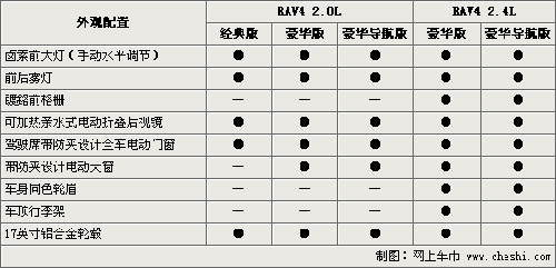 2009年4月10日,以先行進口引入中國最終在國內(nèi)實現(xiàn)本地化生產(chǎn)的豐田RAV4,正式登陸中國汽車市場上市銷售。準(zhǔn)備購買這一車型的消費者,在面對著這一擁有2.0L與2.4L兩種排量共計10款車型,售價從18.98萬元至26.43萬元的國產(chǎn)RAV4,難免會看得眼花繚亂不知從何下手“十選一”挑出一臺適合自己的新車。通過對以下國產(chǎn)RAV4十款車型配置差異的解析,或許您會找到答案。