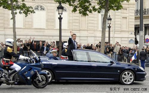 法國(guó)總統(tǒng)薩科齊的座駕是一輛豪華版標(biāo)致607,全車超過(guò)5米,配備由鋼板和玻璃材質(zhì)組成了自動(dòng)折疊車頂。這輛專門為總統(tǒng)設(shè)計(jì)的標(biāo)致607 Paladine在法國(guó)Cerizay的埃利茲(Heuliez)工廠誕生。