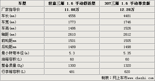東風雪鐵龍世嘉三廂1.6手動舒適型和標致307-1.6手動舒適型都可以稱得上是該車款中的主力車型,兩款車型的定價相差了4000元整。在車身尺寸方面世嘉三廂車長和車寬方面都要優(yōu)于標致307尺寸。兩款車型的軸距均在2600mm左右,該尺寸在同級別車型中比較少見,完全可以滿足一般乘客的使用需求。307的車身高度達到了1526mm,這一點保證了其內(nèi)部高度的寬敞。標致307的行李箱容積達到了620升,可以稱上是海量了,而世嘉三廂僅達到了481升。標致307的前后輪距都要大于世嘉三廂,意味著標致307操控性要優(yōu)越于雪鐵龍世嘉。