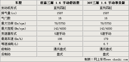 東風雪鐵龍世嘉三廂和標致307動力系統(tǒng)相同,都是1.6升直列4缸發(fā)動機并且同時運用了電子節(jié)氣門技術(shù),該技術(shù)可以能根據(jù)駕駛員的需求愿望以及整車各種行駛狀況確定節(jié)氣門的最佳開度,,確保了車輛最佳的動力性和燃油經(jīng)濟性。兩款車型的動力輸出完全一樣,但是由于各自的整備質(zhì)量和設計不同,所以在最高時速和油耗上有所區(qū)別。兩款車型的變速系統(tǒng)均是5速手動變速箱。制動方式兩款車型均為前通風盤式后實心盤式的剎車。