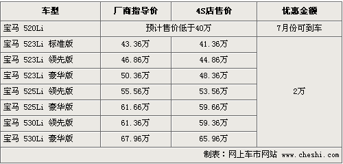 筆者從寶馬北京地區(qū)經(jīng)銷商處了解到,目前寶馬5全系車型只有525和530有現(xiàn)車供應(yīng),消費(fèi)者選購(gòu)現(xiàn)車可以享受2萬(wàn)元左右的優(yōu)惠,優(yōu)惠后5系最低售價(jià)僅為41.36萬(wàn)元。4S店主要有銀色、灰色等款可以挑選,而523需要接受預(yù)訂,同時(shí)新款的寶馬入門(mén)級(jí)車型520預(yù)計(jì)于7月份到店,但目前價(jià)格和相關(guān)資料尚未公布。