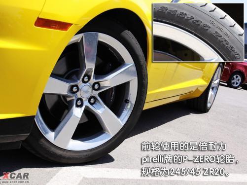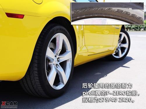 雪佛蘭Camaro的轉(zhuǎn)向燈設(shè)計(jì)得很有意思,在車身側(cè)面前后兩端的部位都可以看到,這一風(fēng)格有些保時捷的味道。而在車身的側(cè)面不僅能看到Camaro的字樣,在前輪后邊的位置上,還可以看到通用GM的logo,起到了非常不錯的裝飾作用。五輻鋁合金輪轂簡潔、硬朗,很符合這款車的風(fēng)格,同時4只腳上穿得都是倍耐力pirelli牌的P-ZERO款運(yùn)動鞋,前邊兩雙鞋的尺碼為245/45 ZR20,后邊兩雙鞋的尺碼為275/40 ZR20。透過輪轂還可看到,前后輪的剎車卡鉗上均帶有brembo字樣。