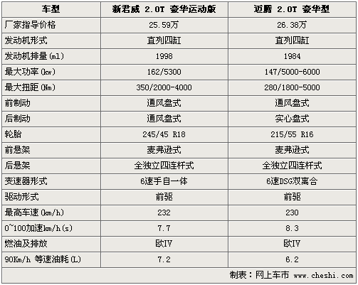 在動(dòng)力性能方面,新君威2.0T和邁騰2.0T均搭載了渦輪增壓引擎。由于引擎調(diào)教不同,所以新君威2.0T和邁騰2.0T的最大功率和扭矩分別為162Kw/5300、350Nm/2000-4000和147 Kw /5000-6000、280 Nm /1800-5000。雖然新君威2.0T的動(dòng)力參數(shù)略高于邁騰2.0T,但邁騰2.0T的峰值轉(zhuǎn)速較新君威2.0T更低,換句話說(shuō)邁騰2.0T較新君威2.0T的峰值來(lái)的更早一些。此外,邁騰2.0T配備的6速DSG變速箱較新君威2.0T的6速手/自一體變速箱換擋更加直接和平順。