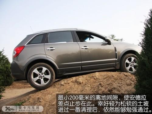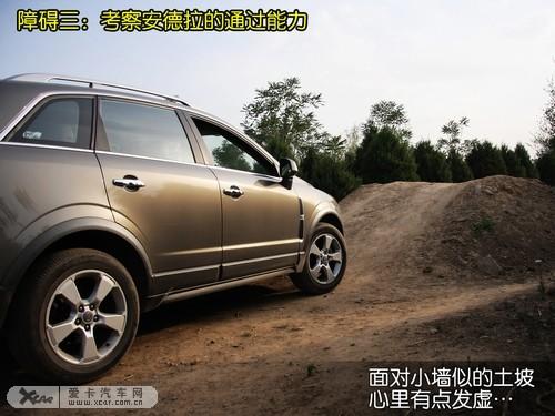 難度逐漸加大,前方陡然出現(xiàn)一座1米多高的土坡,這對(duì)于安德拉的接近角、離去角以及離地間隙將是莫大的考驗(yàn)。擁有24度接近角、23度離去角和18.2度縱向通過(guò)角的安德拉,在接近土坡時(shí)還可以從容通過(guò),但是最小200毫米的離地間隙,使安德拉差點(diǎn)止步在此。幸好較為松軟的土坡進(jìn)過(guò)一番清理后,使安德拉能夠勉強(qiáng)通過(guò)。