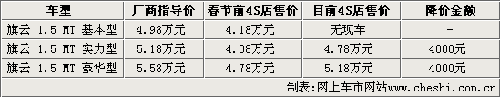 奇瑞自推出1.5L新旗云以后,該產(chǎn)品的市場競爭力進一步加大。雖然新旗云的車型有些偏老,但較低的價格依然吸引著消費者的眼球。雖然曾經(jīng)有段時間奇瑞新旗云最高可以優(yōu)惠現(xiàn)金8000元,但是現(xiàn)在由于車市轉暖,經(jīng)銷商沒必要把價格持續(xù)放低,各店只能優(yōu)惠4000元。