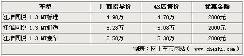 據(jù)銷售人員介紹,現(xiàn)在北京銷售同悅系列車型主要為1.3L三廂舒適版以及豪華版車型,同悅RS也是近期進駐各店,與三廂版優(yōu)惠保持一致。問及1.5L的同悅系列車型何時到店尚不知曉,不過現(xiàn)階段購買1.3L同悅三廂版全系車型可給出2000元的現(xiàn)金優(yōu)惠。