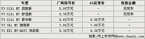 據(jù)東南經(jīng)銷商處銷售人員介紹,目前V3菱悅?cè)惮F(xiàn)車正在逐步充足貨源,最低配的車型仍因尚未投產(chǎn)而無法購買,請消費者諒解。V3系列其它的幾款高配車型各店已經(jīng)不需要再預訂,基本可以滿足消費者購車提車的需要。同時銷售人員還說,現(xiàn)在購車可享受到1000元的現(xiàn)金優(yōu)惠,另有精美的裝飾贈送。