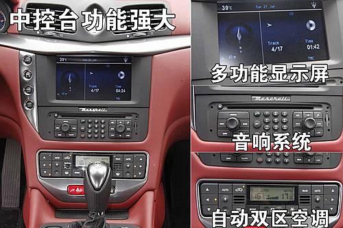 瑪莎拉蒂GranTurismo的中控臺功能很豐富,DVD中央顯示屏、bose音響系統(tǒng)、自動雙區(qū)空調,為您締造一個舒適乘坐空間。