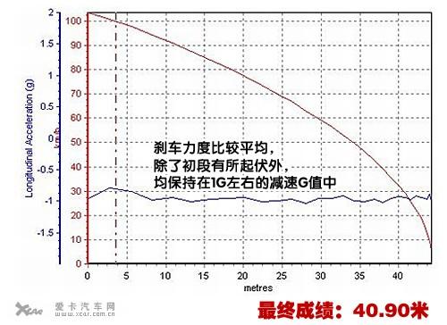 與加速帶來(lái)的驚喜相比,剎車(chē)的數(shù)據(jù)則顯得有點(diǎn)中規(guī)中矩,由于懸掛的調(diào)教偏向舒適性,前懸掛的壓縮還是比較明顯的,好在剎車(chē)前段的制動(dòng)力介入均勻,給人充分的信任感。