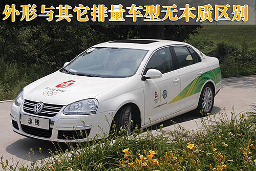 從外觀上來(lái)看1.4TSI速騰車型與目前市場(chǎng)上銷售的1.8T、1.6以及2.0車型基本一致,車輛的尺寸也沒(méi)有明顯的變化,而因?yàn)樵?jīng)是08奧運(yùn)綠色車隊(duì)的成員,因此該車的外觀貼有相應(yīng)的貼紙,更加凸顯了這款車型的與眾不同。