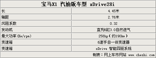 寶馬X1的長(zhǎng)度為4.45米、軸距為2.76米,這只比寶馬X3的長(zhǎng)度短了10厘米和3.5厘米。對(duì)于如此大的車(chē)身尺寸,寶馬方面也考慮到了X1的推出有可能會(huì)阻礙較大型SUV(如X3)的銷(xiāo)售。不過(guò)更大的尺寸卻意味著X1可能裝下更強(qiáng)勁的引擎、變速器和4驅(qū)系統(tǒng)。