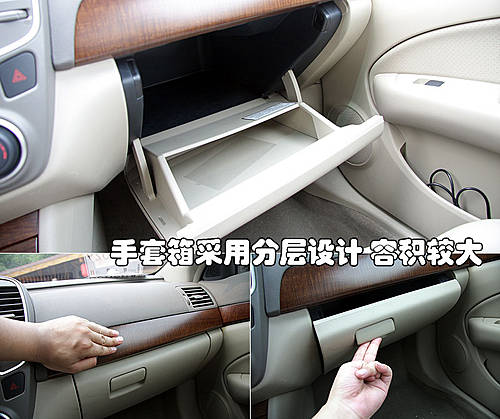 東風(fēng)日產(chǎn)新軒逸的手套箱有阻尼設(shè)計(jì),在打開手套箱后不會因重力而自由下落,手套箱容積比較大,并采用分層設(shè)計(jì),可存放不少物品。