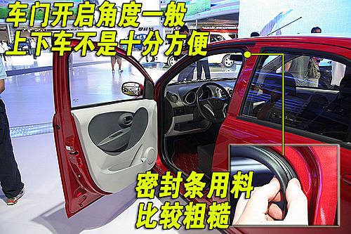 駕駛員一側(cè)車門完全打開后車門開啟角度有限,身材較高的用戶上下車會(huì)比較不方便。車門四周有橡膠密封條手觸感覺比較粗糙。
