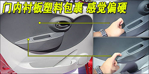 天津一汽威姿V1門內(nèi)襯板由塑料包裹,手觸感覺整體偏硬,胳膊長時(shí)間放置會(huì)感覺勞累。