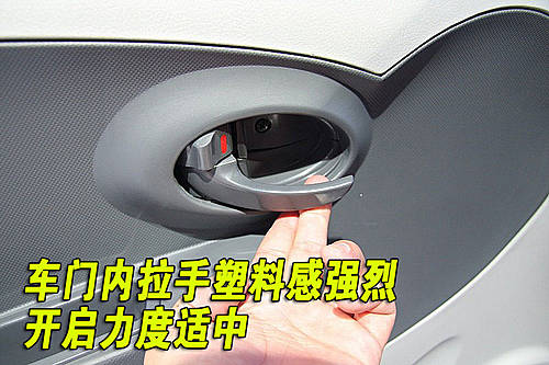 天津一汽威姿V1車門內(nèi)側(cè)拉手材料為塑料材質(zhì),但整體做工還是不錯(cuò)的,拉手周圍的做工都很精細(xì)。