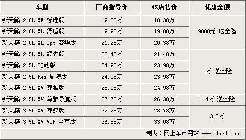 據(jù)4S店銷售人員介紹,目前消費(fèi)者購(gòu)買新天籟2.0和2.5排量車型分別贈(zèng)送價(jià)值8000元左右的全車保險(xiǎn),除此之外,現(xiàn)車現(xiàn)金優(yōu)惠從9000元-3.5萬元不等。其中2.0排量現(xiàn)車優(yōu)惠9000元,優(yōu)惠后最低僅售18.38萬,2.5L低配版優(yōu)惠1萬,高端導(dǎo)航版優(yōu)惠1.4萬,3.5排量則最高達(dá)到了3.5萬現(xiàn)金優(yōu)惠。目前2.0L和2.5L排量車型有黑色、白色、紫色等現(xiàn)車供應(yīng),但數(shù)量有限,部分車型還需要預(yù)訂。