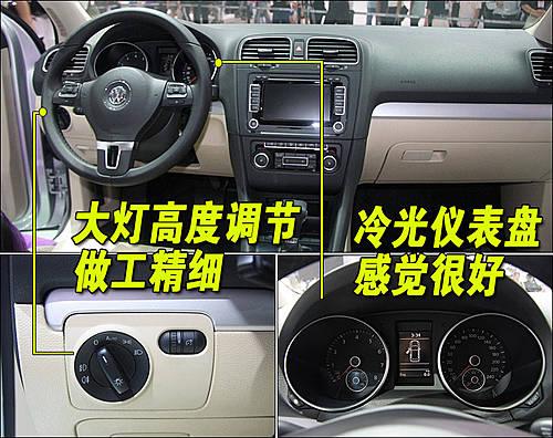 第六代高爾夫的內(nèi)飾依舊延續(xù)了德系車簡單實用的風(fēng)格,中控臺的用料給人感覺很充實,方向盤左側(cè)的大燈調(diào)節(jié)旋鈕檔檔入位清晰,手感上佳。儀表盤采用了雙炮式的運動設(shè)計,黑底白字讓人很容易的就可以看清表針的指向。