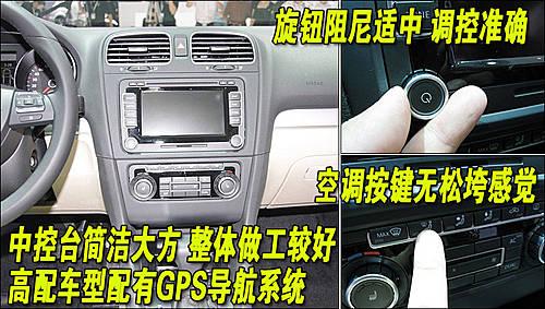 第六代高爾夫的中控臺看起來簡單易懂,但是各按鈕以及旋鈕的塑料感很強烈,空調(diào)調(diào)節(jié)旋鈕感覺很松散,反饋效果一般。