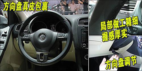 第六代高爾夫的方向盤采用了三幅式設計,并且加以真皮包裹,運動中又透露出高貴。在握柄處采用了防滑凸起設計,局部做工精致檔次感極高,不過手感稍稍偏硬。