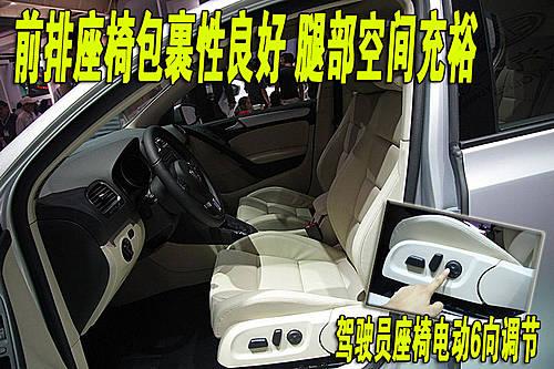 第六代高爾夫整車座椅均采用真皮材料,駕駛席座椅前后、靠背角度、座椅高度為電動調(diào)節(jié)。各按鈕四周做工較細致,但感覺比較松垮。乘坐時可以感覺到前排座椅對于背部的支撐與包裹十分到位,同時前排座椅坐墊長度也很合適,對大腿部分的支撐充足。