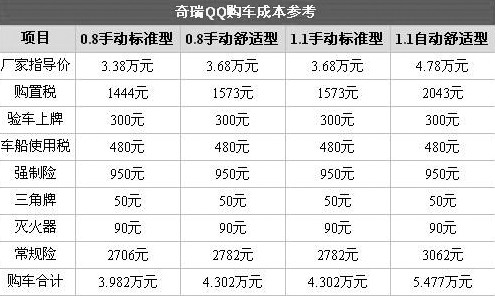 一、購車成本,奇瑞QQ的0.8手動標(biāo)準(zhǔn)低廉的價格,非常適合資金不足的消費(fèi)者,夠用的配置,較好的油耗能夠滿足眾多用戶的需要。1.1手動標(biāo)準(zhǔn)版合理的價位,較高的配置,更適合大眾群體選購。