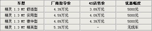 作為長(zhǎng)城汽車的首款轎車產(chǎn)品,精靈在前段時(shí)間再次推出了09款新車型,在上市的同時(shí)進(jìn)行了價(jià)格調(diào)整,精英型、豪華型、舒適型三個(gè)品種基于老款降幅4000元。目前長(zhǎng)城精靈的老款車型的現(xiàn)車已經(jīng)不多,而且據(jù)網(wǎng)站價(jià)格監(jiān)測(cè)系統(tǒng)顯示 老款精靈在近期也有了很大的價(jià)格變化。