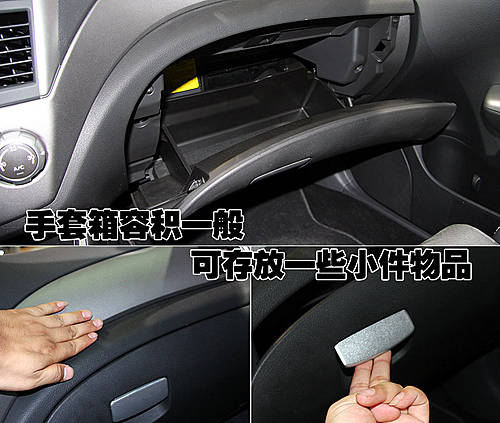 斯巴魯翼豹手套箱沒有阻尼設(shè)計,在打開手套箱后依靠重力而自由下落,手套箱內(nèi)部空間比較小,可以存放一些小件物品。