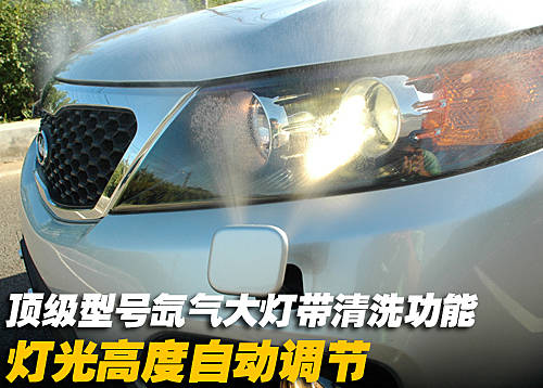 HID氙氣前大燈與極具起亞家族特色的“老虎嘴”狀散熱格柵直接相連,燈內(nèi)采用黑底設(shè)計(jì)加上雙圓燈組的布局,讓全新索蘭托在SUV的剛毅粗獷中又添加了幾分銳利的鋒芒。同時(shí)帶有大燈清洗和自動調(diào)節(jié)功能。