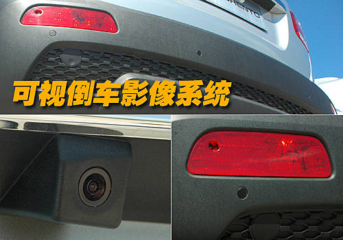 全新索蘭托頂配車型配備了倒車影像,在尾部鍍鉻裝飾條下方安置了一個倒車攝像頭,變速器掛入倒檔時內(nèi)后視鏡顯示后方圖像。同時尾燈和高位剎車燈均由LED燈組組合而成。
