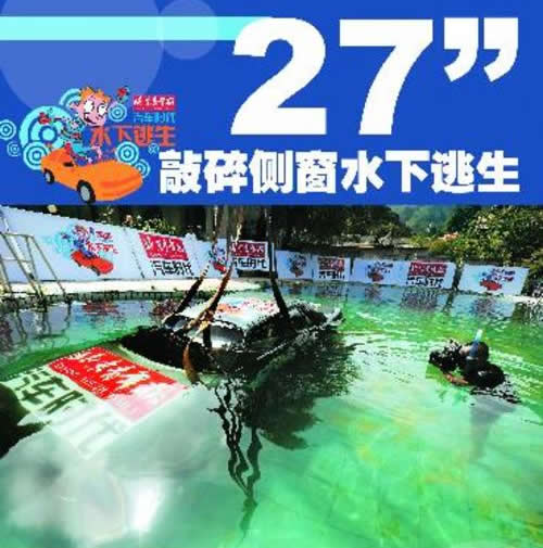 由《北京青年報》舉辦的"車輛落水逃生試驗(yàn)"上周在懷柔雁棲景區(qū)的巴克公社進(jìn)行。試驗(yàn)分三段進(jìn)行,在車輛落水后,分別驗(yàn)證了推開車門逃生、砸破側(cè)窗逃生和砸碎前風(fēng)擋逃生。試驗(yàn)結(jié)果顯示,車輛落水后保持鎮(zhèn)定、積極措施自救,是成功逃生的保證。推開車門逃生是最直接、快速的自救方法。
