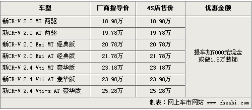 據(jù)4S店銷售人員介紹,目前購買本田CR-V仍需要加價(jià)提車,需要加現(xiàn)金7000元或者加1.5萬元的全車裝飾,裝飾包括了腳墊、尾翼、行李架、踏板等。消費(fèi)者可根據(jù)需求選購,但是必須達(dá)到1.5萬元的消費(fèi)金額。目前2.0和2.4自動檔有黑色、銀色現(xiàn)車供應(yīng),其他特殊顏色還需要預(yù)定。