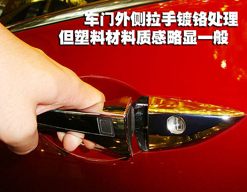 思鉑睿的車門拉手為鍍鉻裝飾。開啟方式為“拉動式”,其整體做工比較精細(xì)。反復(fù)開啟車門時車門把手沒有松動的跡象,并且開啟時手感比較厚重。