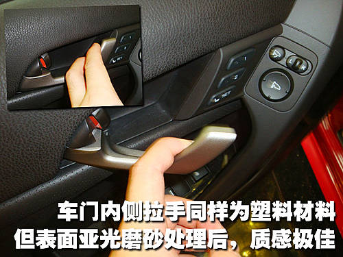 車門內(nèi)側(cè)拉手采用磨砂設(shè)計(jì),在提升整體檔次的同時手感也比較到位。此外,車門內(nèi)拉手周邊配件的做工也很細(xì)致。