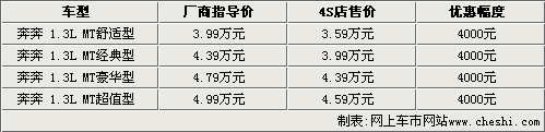 據(jù)長安轎車4S店銷售人員介紹,奔奔目前現(xiàn)車都比較齊全,但與上月相比,優(yōu)惠幅度明顯有所減少。目前奔奔1.3L四款車型只能優(yōu)惠4000元,比前一段時(shí)間少了1000元。但銷售人員也表示,如果消費(fèi)者到店詳談,還可能有進(jìn)一步優(yōu)惠的余地。