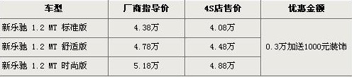 據(jù)北京上海通用五菱4S銷售人員介紹,新樂(lè)馳目前在售的車型分為3款手動(dòng)擋車型,分別為標(biāo)準(zhǔn)版、舒適版和時(shí)尚版,售價(jià)區(qū)間為4.38萬(wàn)元-5.18萬(wàn)元。為了迎接60周年大慶的來(lái)臨,新樂(lè)馳出現(xiàn)了優(yōu)惠現(xiàn)金3000元及加送1000元裝飾的活動(dòng),此次優(yōu)惠活動(dòng)截止日期為10月25日。