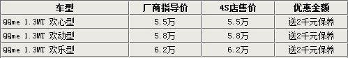 剛剛上市不久的QQme新車,經(jīng)銷商表示現(xiàn)階段雖然沒有現(xiàn)金優(yōu)惠,不過購車均可享受2000元的保養(yǎng)贈送,但不能折換現(xiàn)金。三款車型的顏色主要為藍(lán)色車型,其他顏色需要預(yù)訂,訂金1000元,一個(gè)星期左右便可提車。