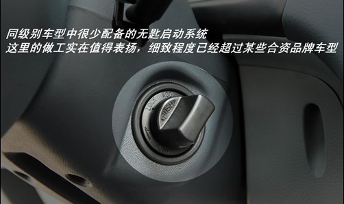 不過V3菱悅裝備的這套無匙啟動系統(tǒng)從樣式到功能都并非我們熟悉的按鈕形式,首先在開車門時還是需要使用鑰匙解鎖,但完成這個步驟后就可以把鑰匙收好了,上車后只要轉(zhuǎn)動轉(zhuǎn)向柱右側(cè)的旋鈕即可啟動發(fā)動機(jī)。如遇特殊情況我們也可將旋鈕拆除,此時就變?yōu)槠胀ǖ蔫匙門了。