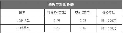 長城酷熊的外形個(gè)性,但是憑借著突出的性價(jià)比以及超大的內(nèi)部空間和1.5LVVT發(fā)動機(jī)等賣點(diǎn),上市后取得了非常不錯(cuò)的銷量。不過最近幾個(gè)月其銷量出現(xiàn)了下滑的勢頭,8月份僅售出1000輛。編輯昨日從北京地區(qū)的一些長城汽車授權(quán)經(jīng)銷商處了解到,近期酷熊的價(jià)格非常穩(wěn)定,全系車型僅能優(yōu)惠1000元,購車后可贈送部分裝飾品。以下是長城酷熊最新報(bào)價(jià)表: