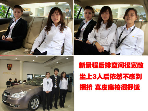 我們同樣又選擇了3名身高為165cm-170cm的美女,分別坐在新款景程的后排,來感受后排橫向空間的表現(xiàn)?此麄兊男θ菥涂芍篮笈趴臻g還是很令他們滿意的,的確表現(xiàn)也是如此。新款景程1807mm的車寬保證了車內(nèi)橫向空間,于“標(biāo)準(zhǔn)身材”的它不謀而合。