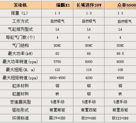 安全配置方面:在三車的半數(shù)或大部分車型上,都配備有ABS+EBD,雙安全氣囊之在瑞麟X1和長城迷你上找到,眾泰5008全系沒有這個被動安全配置。很顯然,瑞麟X1發(fā)揮了后來車型的優(yōu)勢,中高配車型竟然還有前排側氣囊,以及和長城迷你SUV一樣的安全帶未系提醒。另外X1還引入了倒車雷達,這是其他兩車所沒有的。