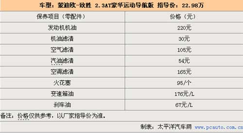 致勝首保為5000公里,之后每1萬公里保養(yǎng)一次。保修期限內(nèi),致勝車主可享受四次免費(fèi)更換發(fā)動(dòng)機(jī)機(jī)油和機(jī)油濾清器的服務(wù),因此保養(yǎng)花費(fèi)會相對減少。致勝每次小保養(yǎng)費(fèi)用為312元,空氣濾清器和汽油濾清器都是每10 000 km更換一次。由于致勝剛上市不久,所以并沒有更為詳盡的保養(yǎng)價(jià)格。在購買致勝的時(shí)候,長安福特有贈(zèng)送4次免費(fèi)更換機(jī)油機(jī)濾保養(yǎng)的政策,因此按這樣計(jì)算的話,2萬km之內(nèi)的保養(yǎng)花費(fèi)會比較少。