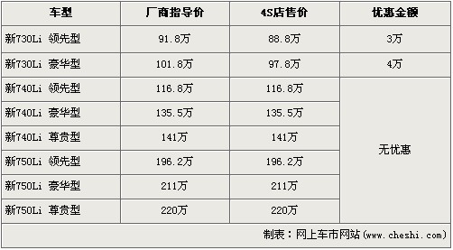 據(jù)北京寶馬經銷店銷售人員介紹,寶馬新7系共分為730Li、740Li、750Li三種等級車型,售價區(qū)間為91.8萬元-220萬元。目前購買新730Li領先型的消費者可以得到3萬元的優(yōu)惠,新730Li豪華版車型可以優(yōu)惠4萬元。消費者還介紹,除了新730Li有現(xiàn)車外,其余車型均需預訂,訂金是10萬元,最早12月份可提車。