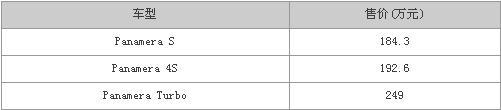 2009年11月9日,保時(shí)捷以“至善者不息”為主題,在廈門(mén)舉行了全新Panamera的發(fā)布會(huì),并且宣布新車將于11月底于全國(guó)范圍內(nèi)各家保時(shí)捷中心到店。共發(fā)布了三款車型,分別為Panamera S、Panamera 4S和Panamera Turbo,詳細(xì)車型售價(jià)請(qǐng)見(jiàn)下表: