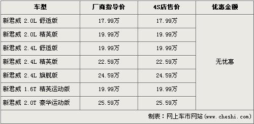 根據(jù)北京別克經(jīng)銷店銷售人員介紹,自別克新君威1.6T上市后,目前別克新君威全系共有7款車在售,售價區(qū)間為17.99萬元-25.59萬元。銷售人員還介紹,店內(nèi)已經(jīng)有新君威1.6T的現(xiàn)車,顏色以紅色和藍色為主,其他車型的現(xiàn)車也比較充足。如果預(yù)訂店內(nèi)沒有顏色的車型,需交訂金為1千元,下個月可提現(xiàn)車。