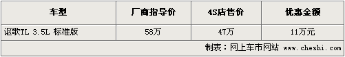 據(jù)謳歌4S店銷售人員介紹,目前謳歌TL在原來車型的基礎(chǔ)上增加選裝運動禮包,如加裝需要繳納4萬元,可將豪華版升級為運動版車型,運動版車型更換18寸輪轂及輪胎,并增加了擋泥板、雨擋等套件,F(xiàn)在消費者購車最高可優(yōu)惠現(xiàn)金11萬元,優(yōu)惠后售價僅為47萬元。目前TL普通版的現(xiàn)車較為齊全,并且有多款內(nèi)飾顏色可供挑選。如消費者有意購買,到店詳談會有更優(yōu)惠的價格。北京地區(qū)各4S店由于訂單不同,各店銷售的現(xiàn)車顏色有所不同。