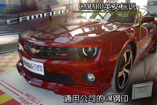 車身側(cè)面的CAMARO的英文標(biāo)識象征了其真正的身份,不過沒有這個標(biāo)識光看到這個外形,就知道此車是屬于“來者不善”型的,下面的GM鋼印代表了此款車型屬于通用,同時也透出了CAMARO在通用車系中的地位非同一般。