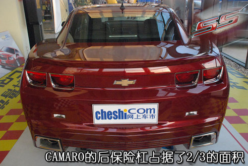 轉(zhuǎn)到車尾,Camaro的尾部雖然非常飽滿,但是有棱有角的“飛鏢式”造型始終是貫穿全車。后保險(xiǎn)杠造型極其夸張,巨大的后保險(xiǎn)杠整整占據(jù)了車尾2/3的面積,如果行駛在道路上不知道后車看見(jiàn)如此震撼的車尾還有沒(méi)有膽量踩下油門。