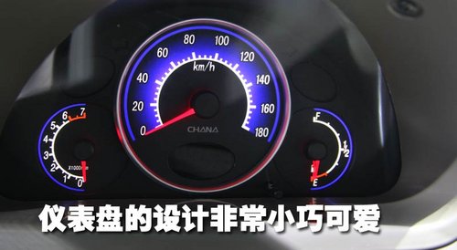 長(zhǎng)安奔奔Mini的儀表盤采用藍(lán)色背景光設(shè)計(jì),這款車的儀表盤表面還帶有長(zhǎng)安轎車的LOGO。另外,圓潤(rùn)的儀表盤位置比較高,但內(nèi)部的表盤設(shè)計(jì)卻非常簡(jiǎn)潔明了。